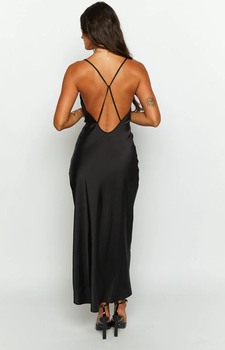 Black Satin Midi Dress